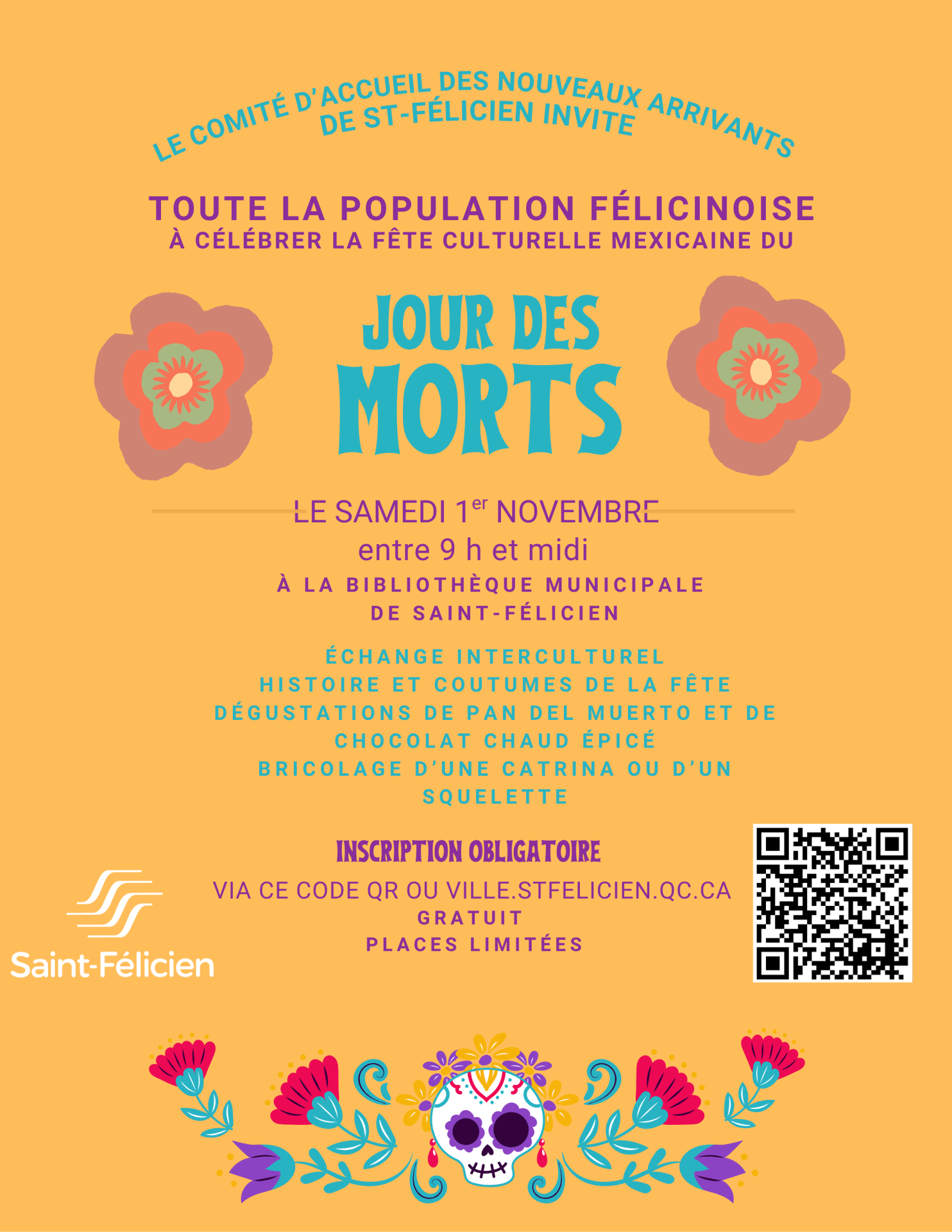 Le Comité d’accueil des nouveaux arrivants de Saint-Félicien invite toute la population félicinoise à découvrir la fête culturelle mexicaine du Jour des Morts!