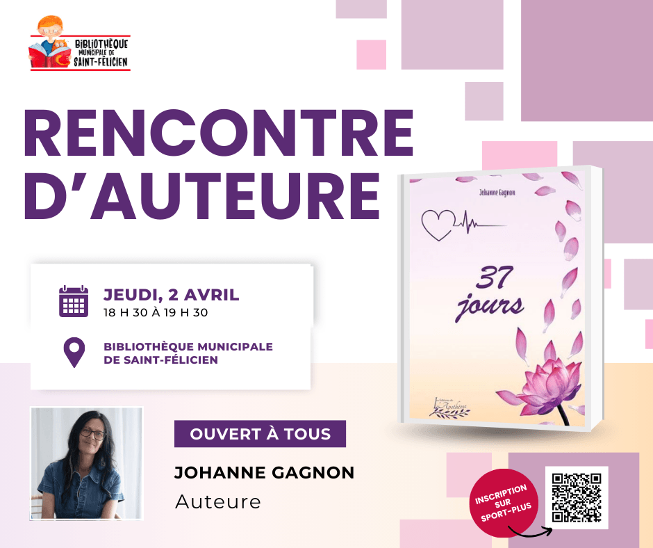 Elle vous parlera également de son tout nouveau livre, 37 jours. Une belle occasion de découvrir l’histoire derrière l’auteure et d’échanger avec une écrivaine d’ici.